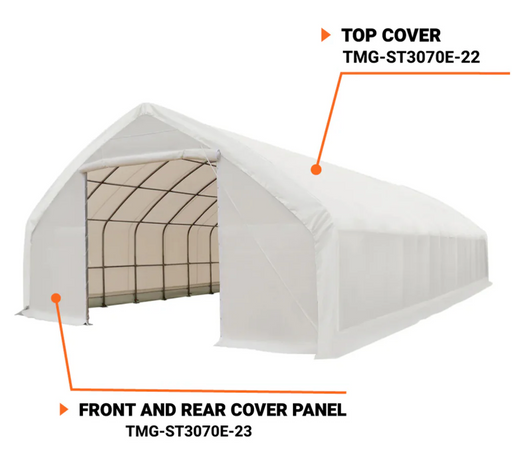 TMG-ST3070E-23 End wall cover (11oz PE tarp), fits front and rear end wall, fabric roll up door cover included. You will need quantity of 2 to cov...