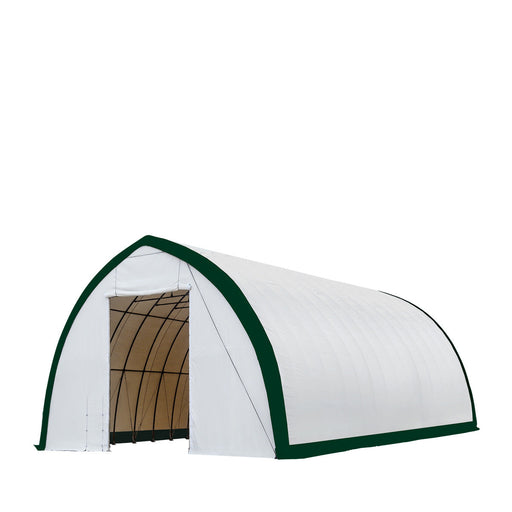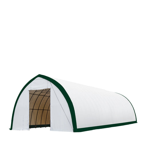 The TMG Industrial 40 x 60 ft Peak Ceiling Storage Shelter features a heavy-duty 17 oz PVC fabric cover that is treated to be fire retardant, UV re...